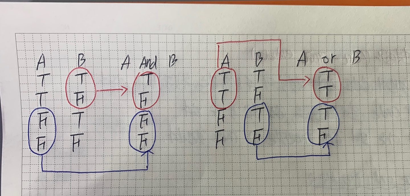 다음 사진은 and와 or의 진리표이다. 여기에서 규칙을 찾을 수 있는데,