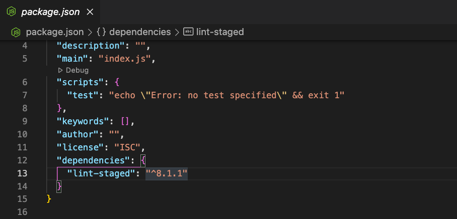 ๋ฐ์ดํธ ํ๊ฒ๋๋ฉด major๊ฐ์ด ๋ณํ์ง ์๋ ์ต์ ๋ฒ์ ์ธ 8.2.1์ ๋ด๋ ค๋ฐ๊ฒ ๋๋ค. ์ด๋ฅผ ์ํด ๊ฐ๋จํ ์คํ์ ์งํํ๋๋ฐ, npm init -y๋ก package.json์ ๋ง๋ค๊ณ npm i lint-stages@8.1.1๋ก 8.1.1๋ฒ์ ์ ํจํค์ง๋ฅผ ๋ค์ด๋ก๋ํ๊ณ ๋์ npm i lint-stages๋ฅผ ์งํํ๋ 8.2.1๋ฒ์ ์ ๋ฐ์๋ค. ์ด๋ฅผ ํตํด ํจํค์ง๋ฅผ ์