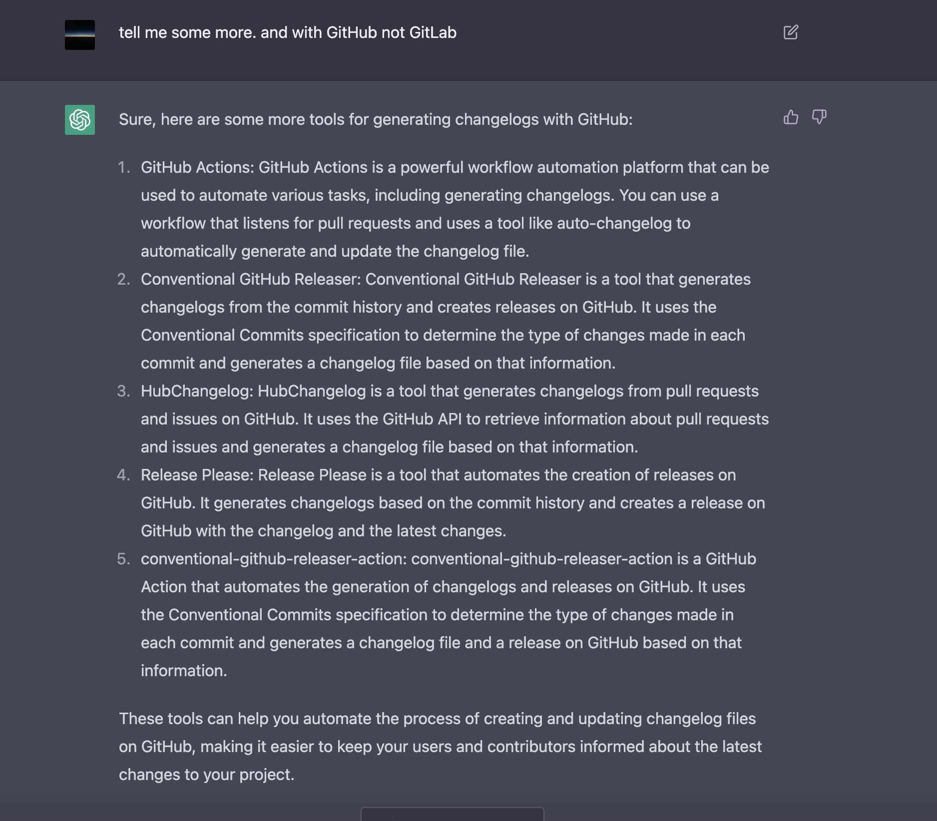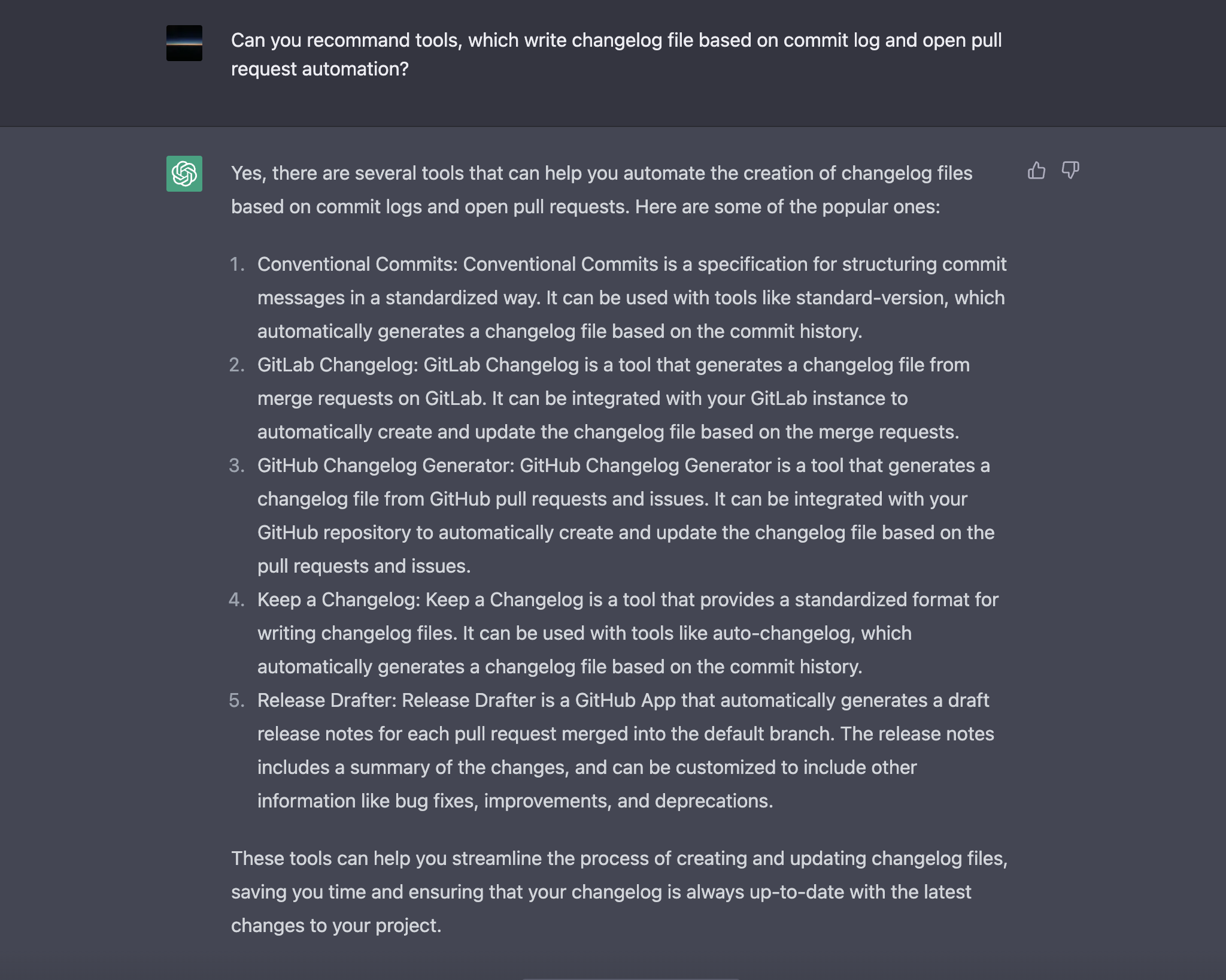 우선, 장안의 화제인 ChatGPT에게 괜찮은 Tool이 있는지 물어봤습니다.