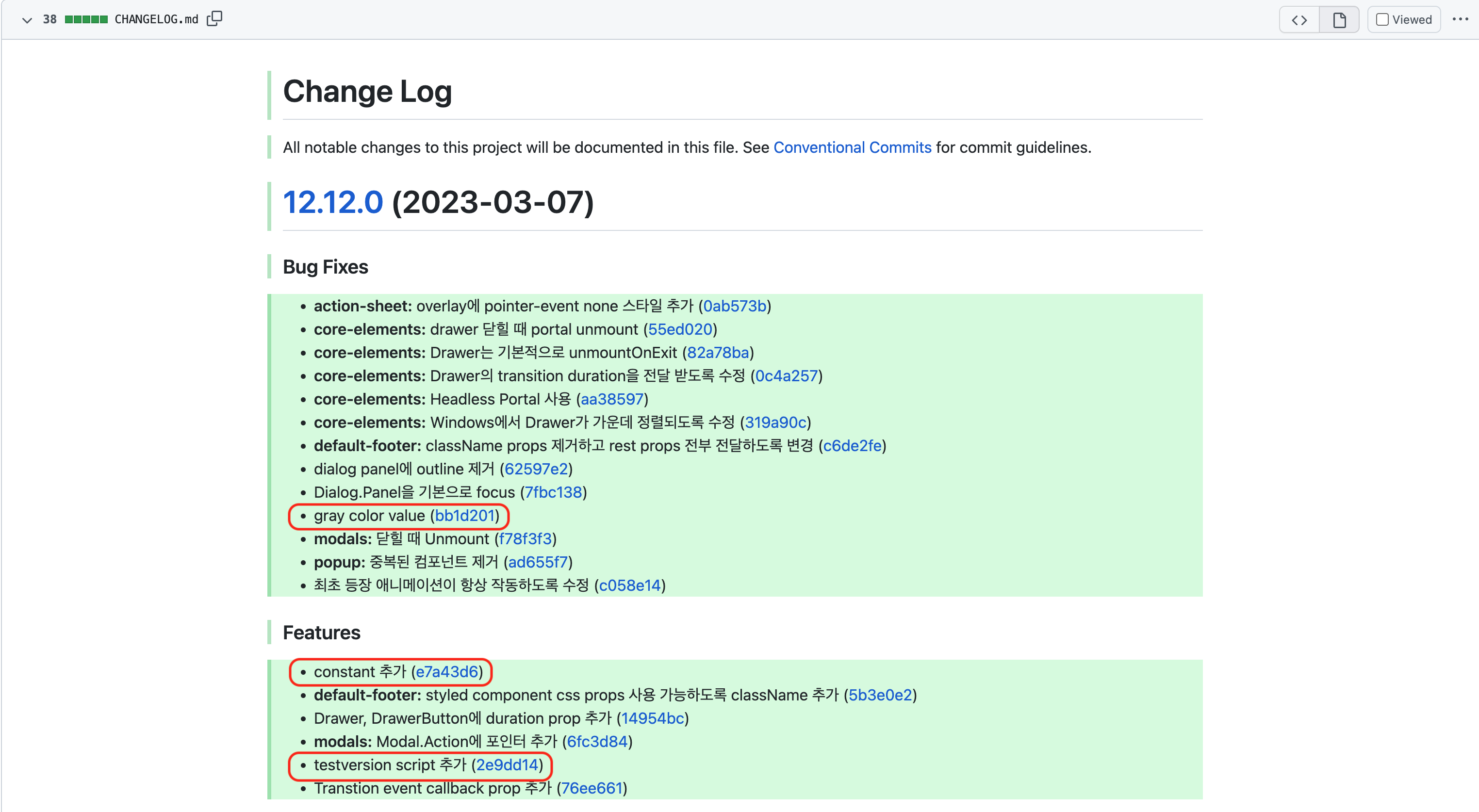 12.11.0버전까지 작성되었던 CHANGELOG의 template를 모두 변경하고 다른 패키지의 CHANGELOG를 새로 추가해야 합니다. 여러 개의 CHANGELOG는 한 개의 CHANGELOG보다 맥락을 파악하는데 시간이 더 소요됩니다. - Learning curve: Conventional Commits에 익숙해지기 위해 해당 문서를 읽고 시간을 투자해야 합니다.